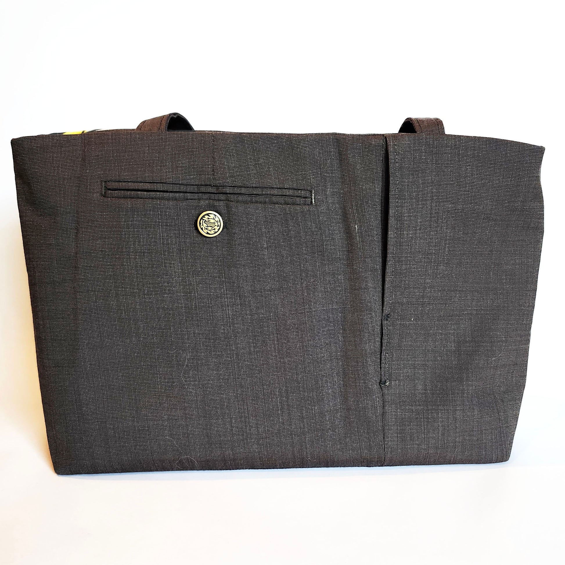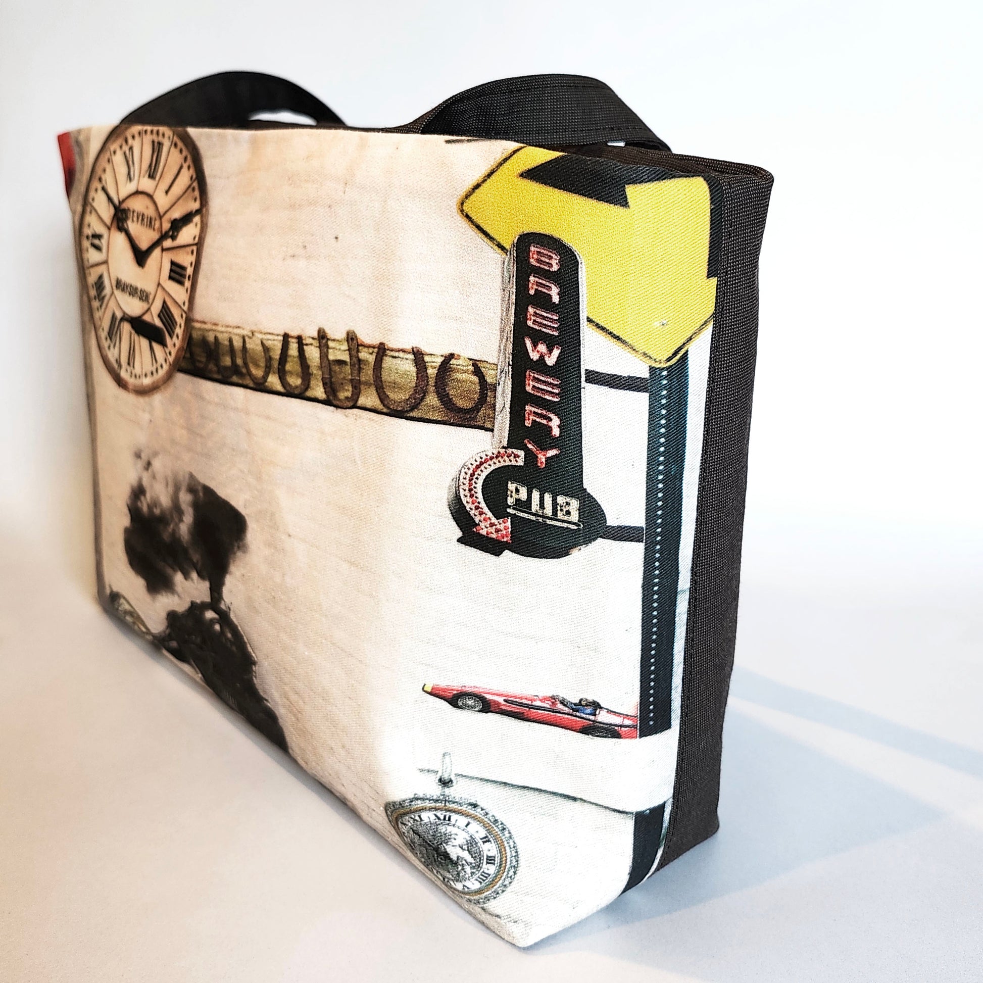 - Collage printed on cotton twill, recycled cotton pants, YKK and upcycled zippers